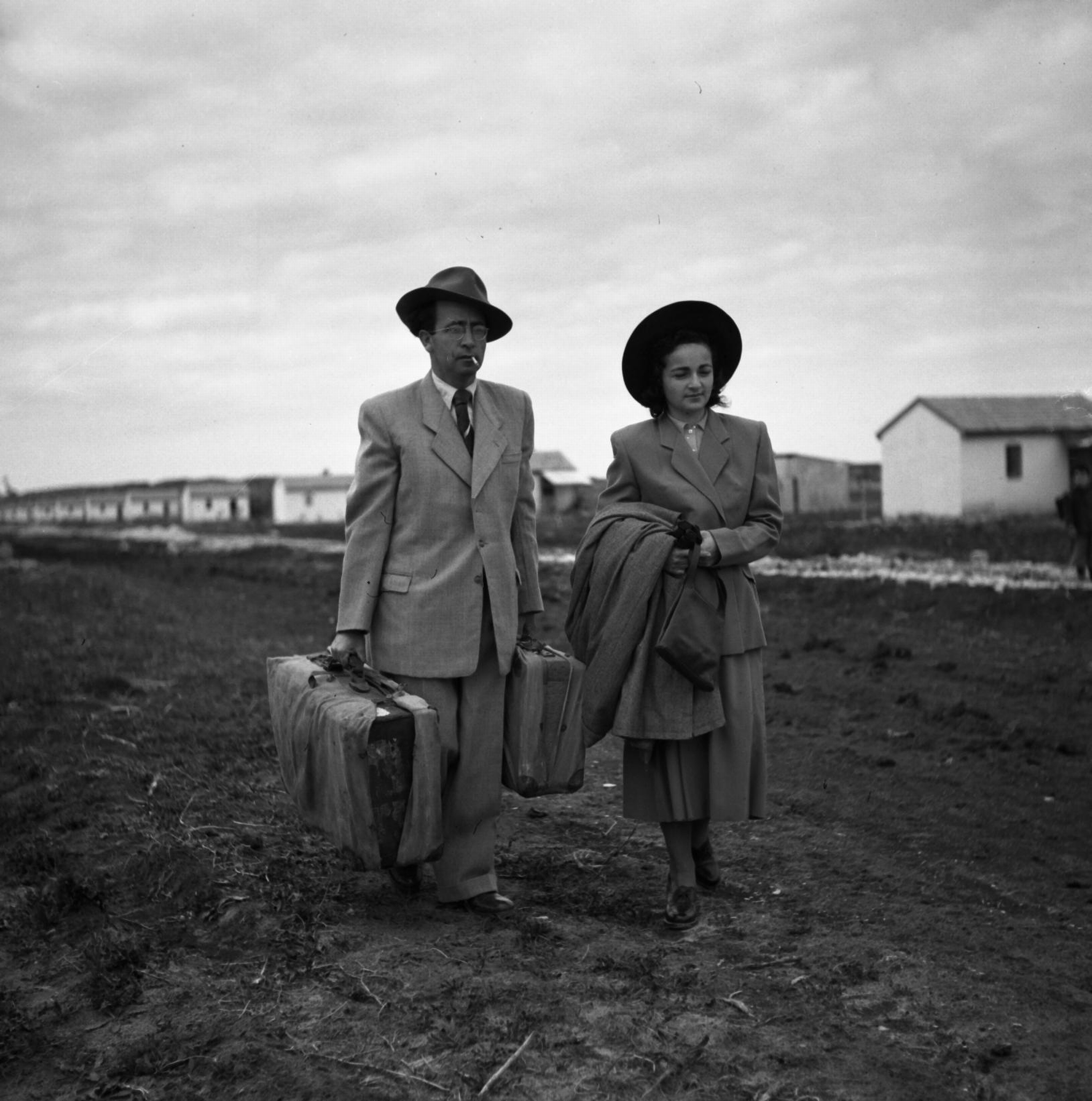 בצילום: ישראל פולק ואשתו דינקה בבואם למושבה.