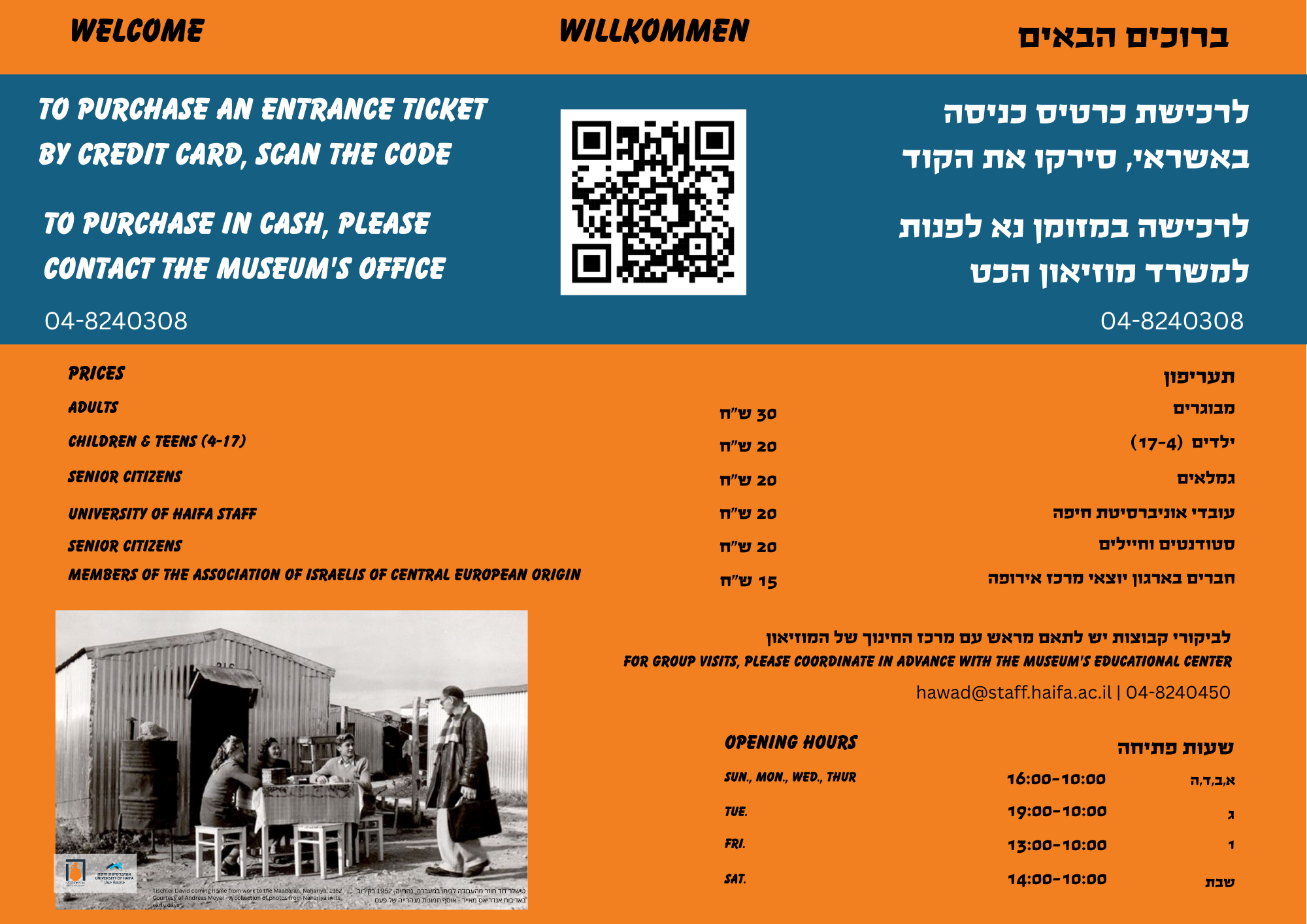 כרטיס כניסה יחיד | האגף למורשת יהדות דוברת גרמנית במוזיאון הכט